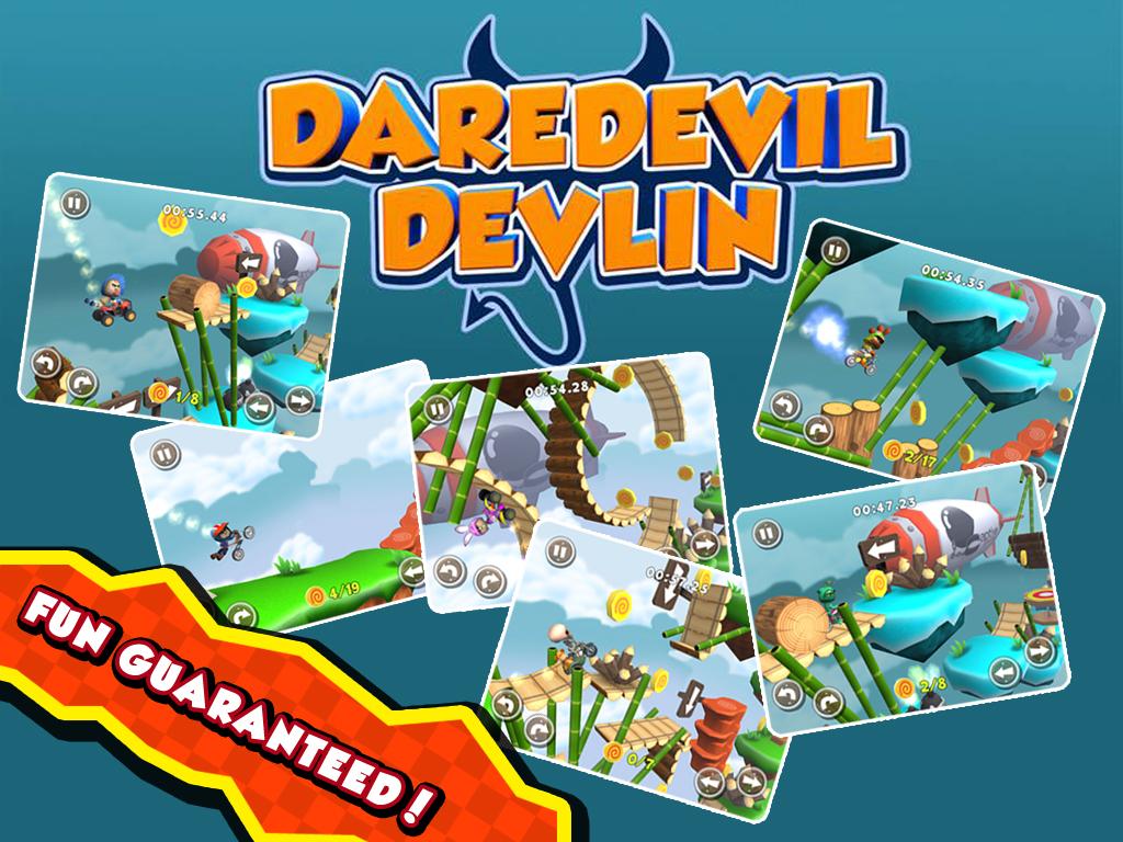 Introducing the newest, the most rad and awesomesaucest bike game ever to grace the Google Play, Daredevil Devlin. Meet Devlin, a wooden doll that wants to be recognized as one of the elite Daredevils. Survive tons of exciting and challenging levels. With tough puzzles and obstacles. Think your way through the levels. Solve how to finish each level the best way possible without killing yourself up. Simply, a game with an attitude.